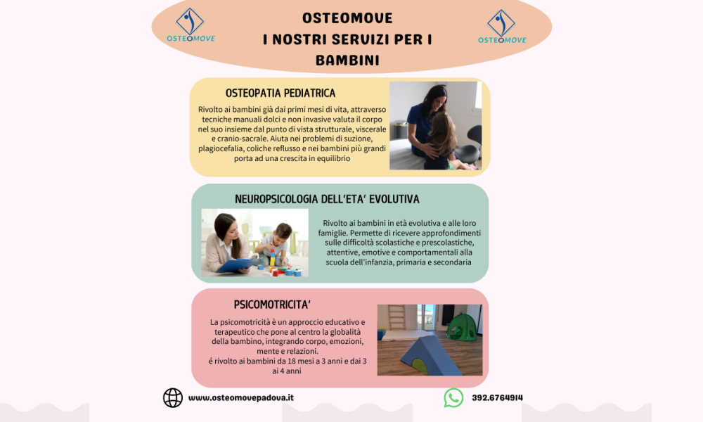 Da qualche mese Osteomove si rivolge anche alla fascia in età pediatrica, proponendo servizi per i bambini.